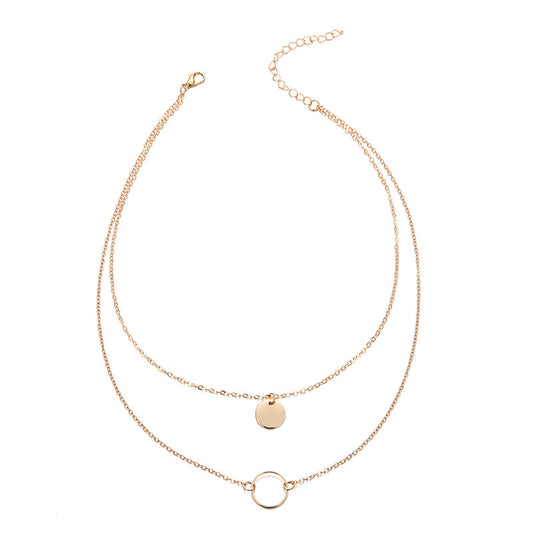Fashion Jewelry Small Circle Disc Alloy Pendant Neck Necklace